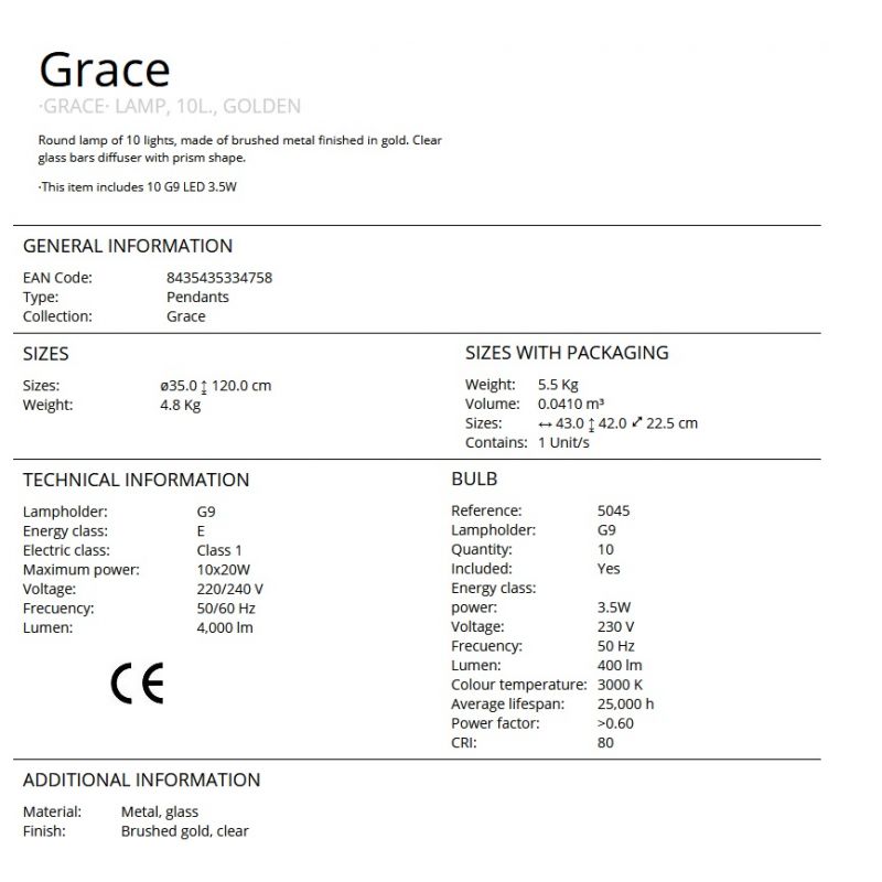 | Dimensiuni | diametru:35cm; inaltime cu suspensie:120cm |