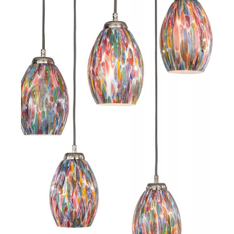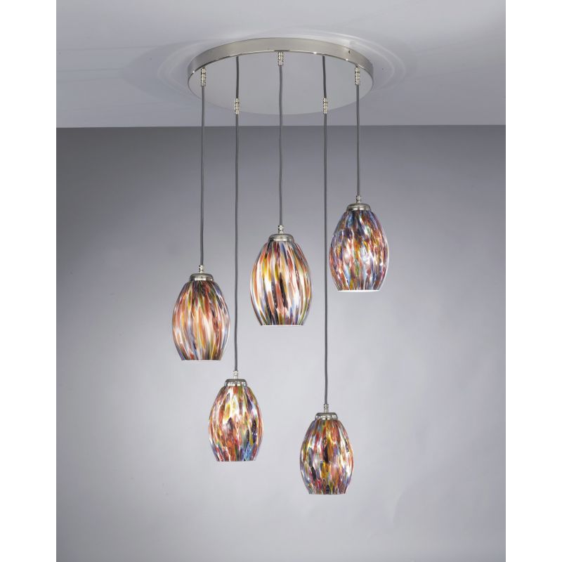 | Materiale | metal finisaj nickel, sticlă suflată dupa tehnica straveche a sticlei "Murrina", cablu electric imbracat in fire de matase antracit |