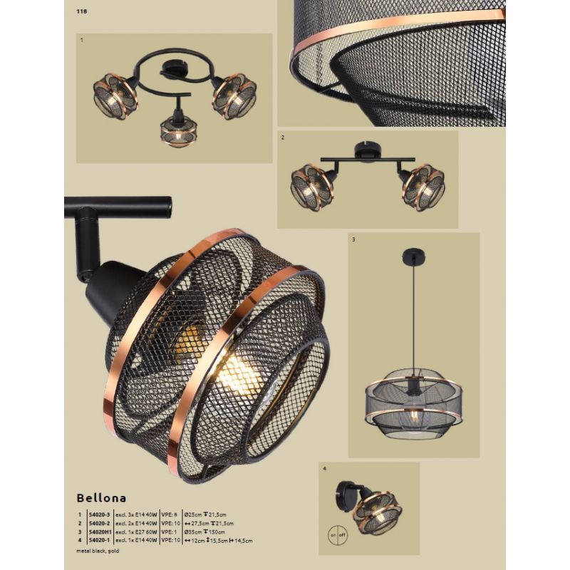 Lustra/ Pendul metal negru/auriu BELLONA