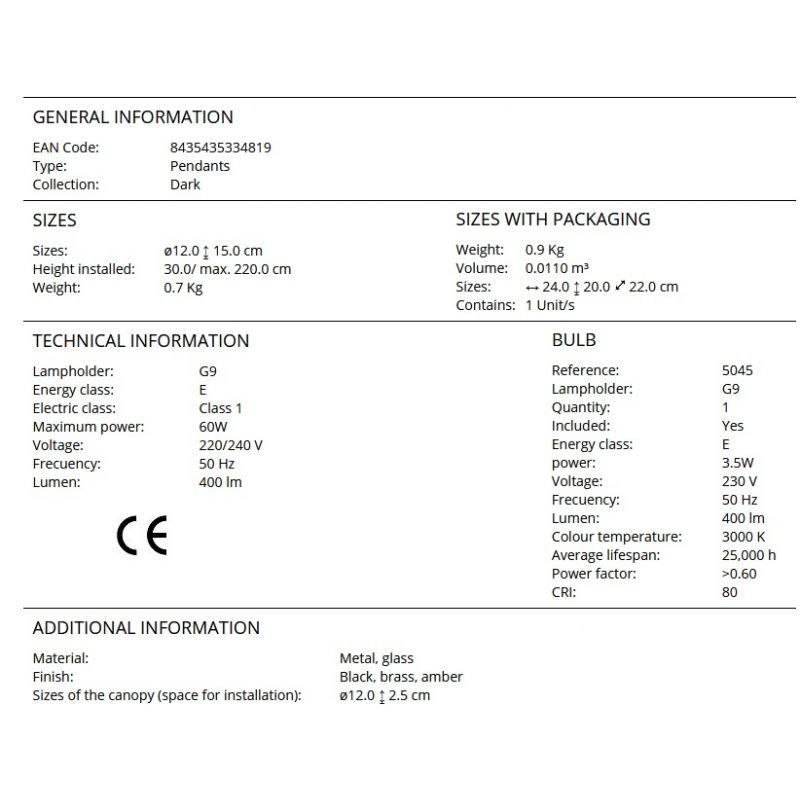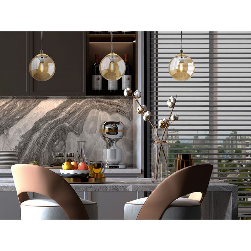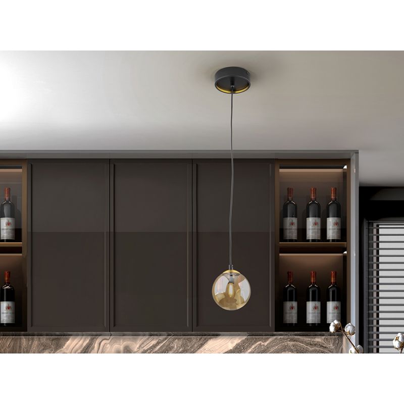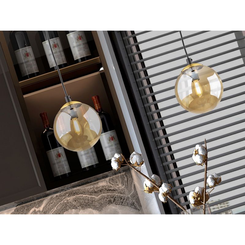 | Descriere | metal finisaj negru mat cu detalii alama satinata, abajur sticla sferica decorativa de 12cm finisaj chihlimbar |