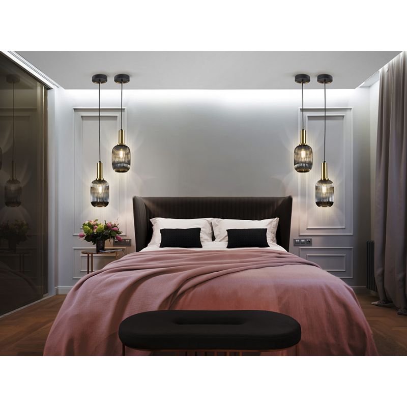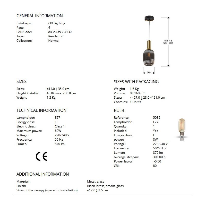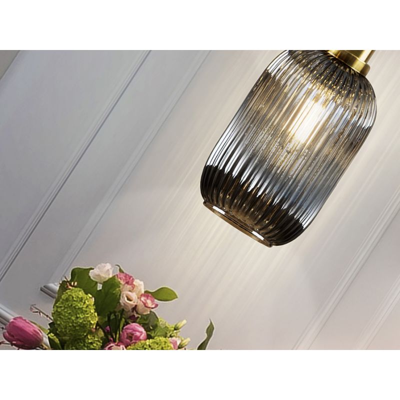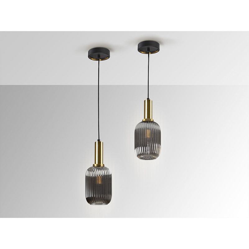 | Descriere | metal finisaj negru mat cu detalii alama satinata, abajur sticla decorativa finisaj gri fumuriu |