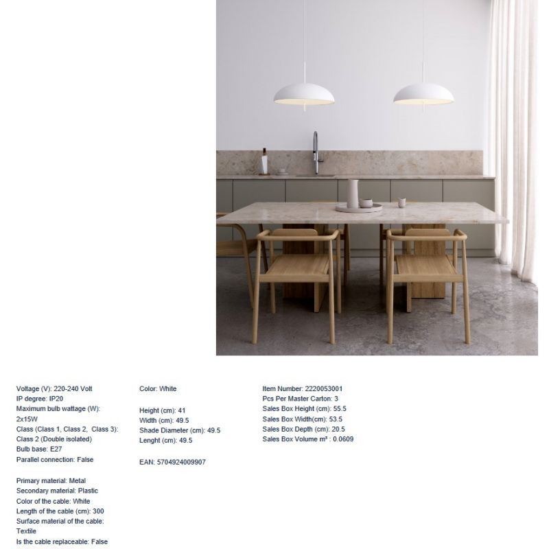 Dimensiuni | diametru:49,5cm; inaltime:41cm + 300cm cablu |