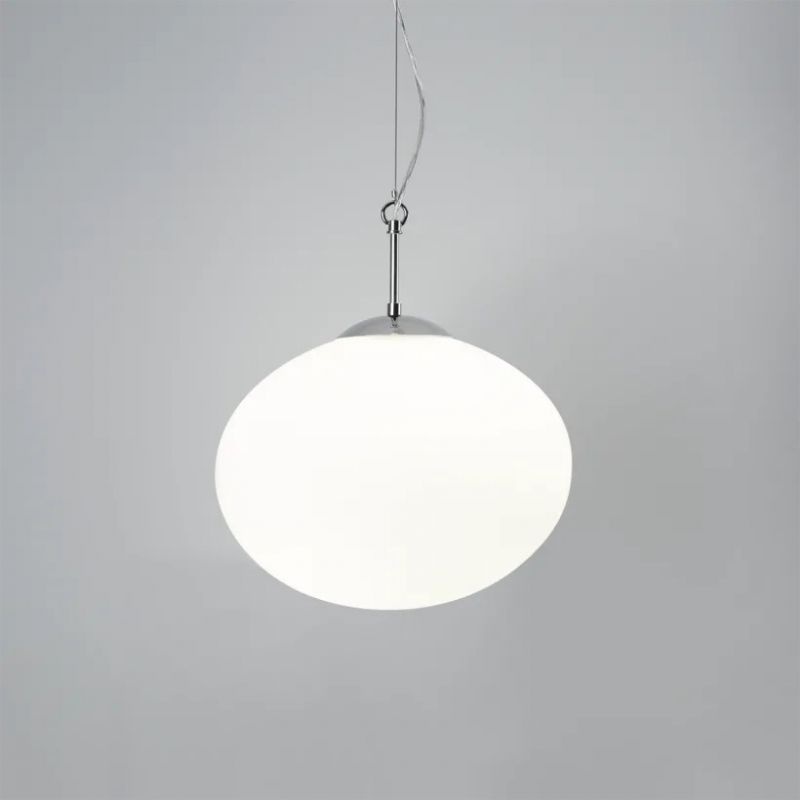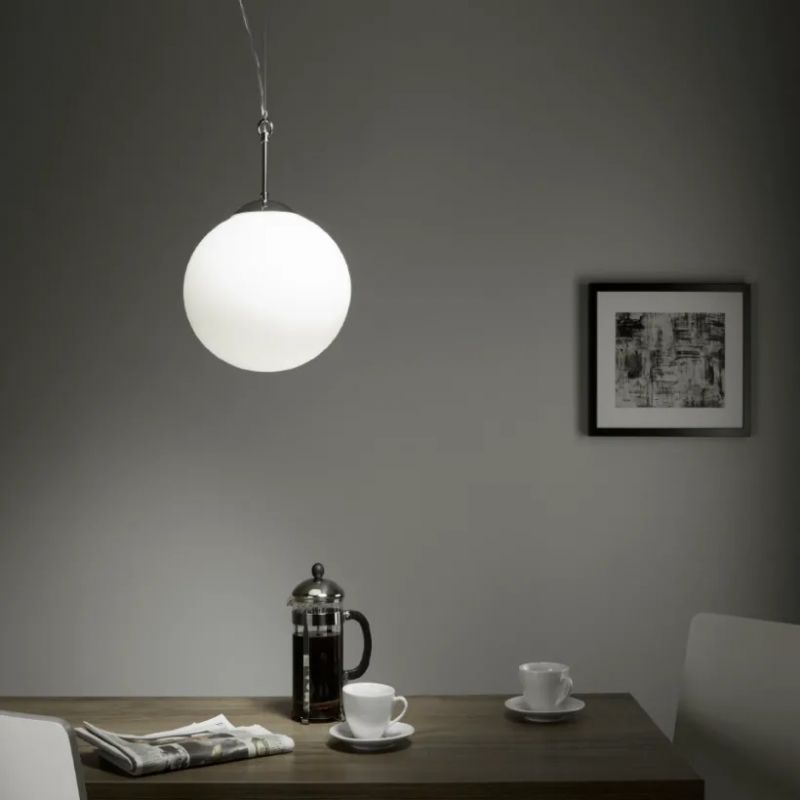 | Materiale | metal finisaj cromat, abajur sticla alba |