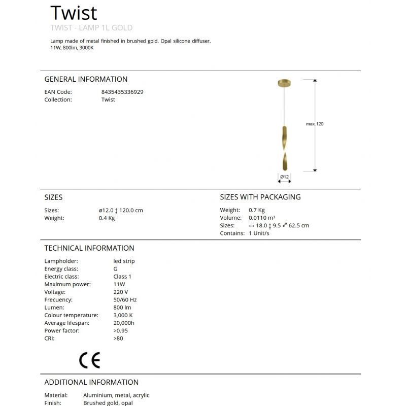 | Descriere | lampa din metal finisaj auriu periat, difuzor silicon opal |
