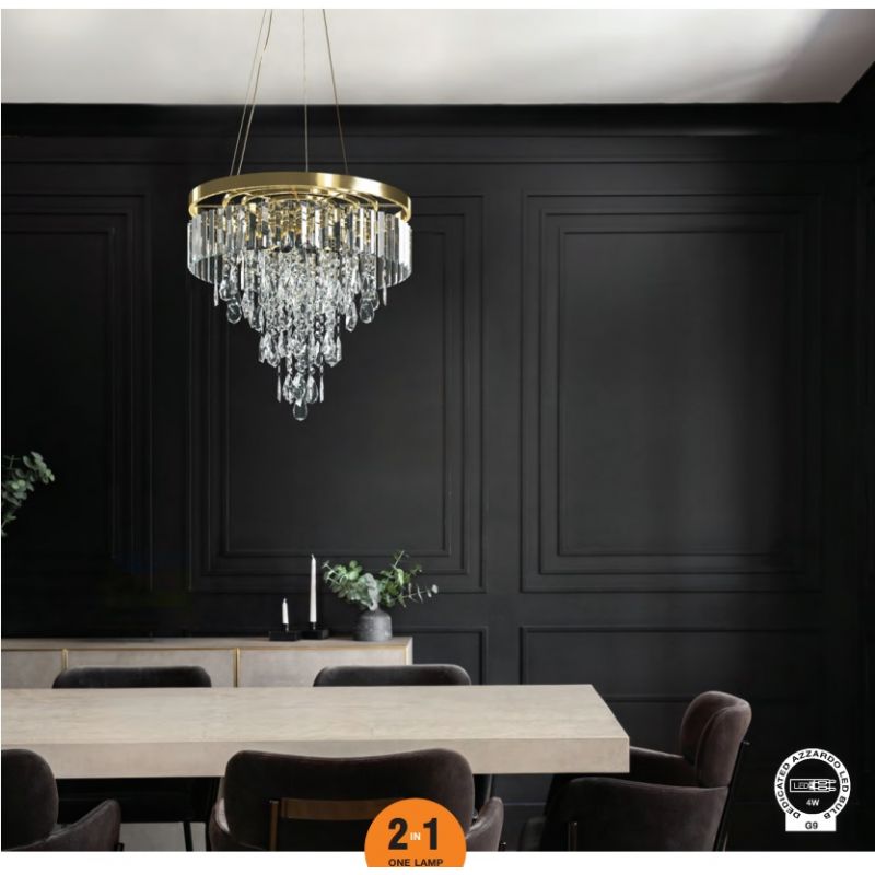 | Informatii produs: | lustra 2 in 1 (se poate monta cu suspensie ca lustra suspendata sau ca lustra aplicata fara suspensie) |
