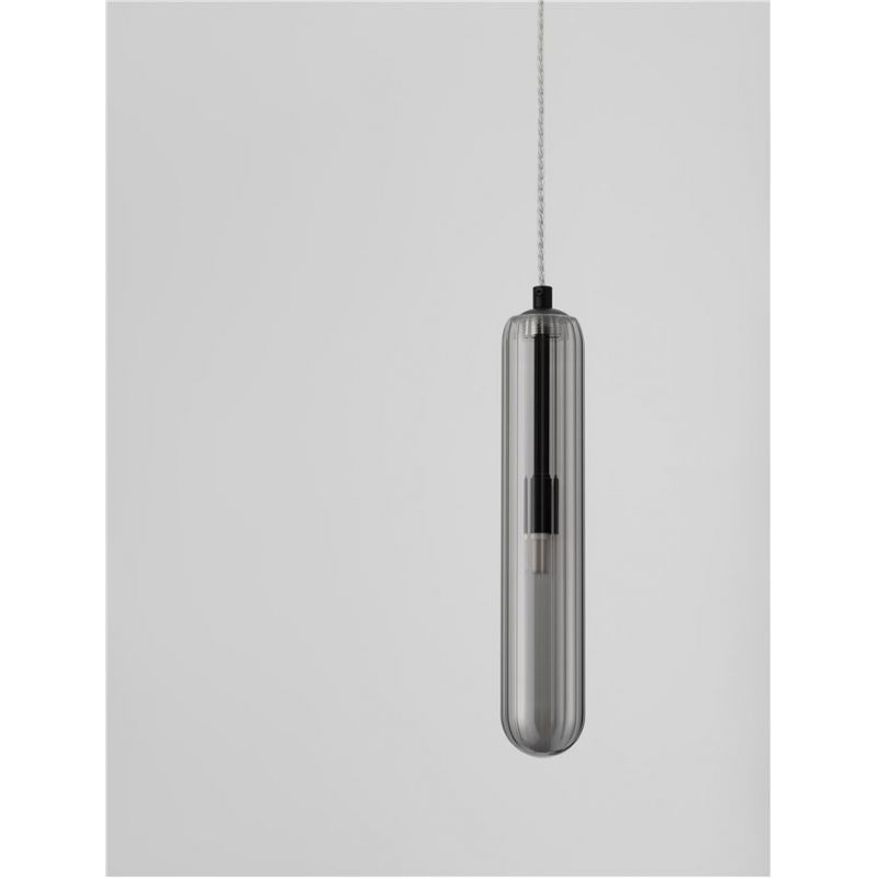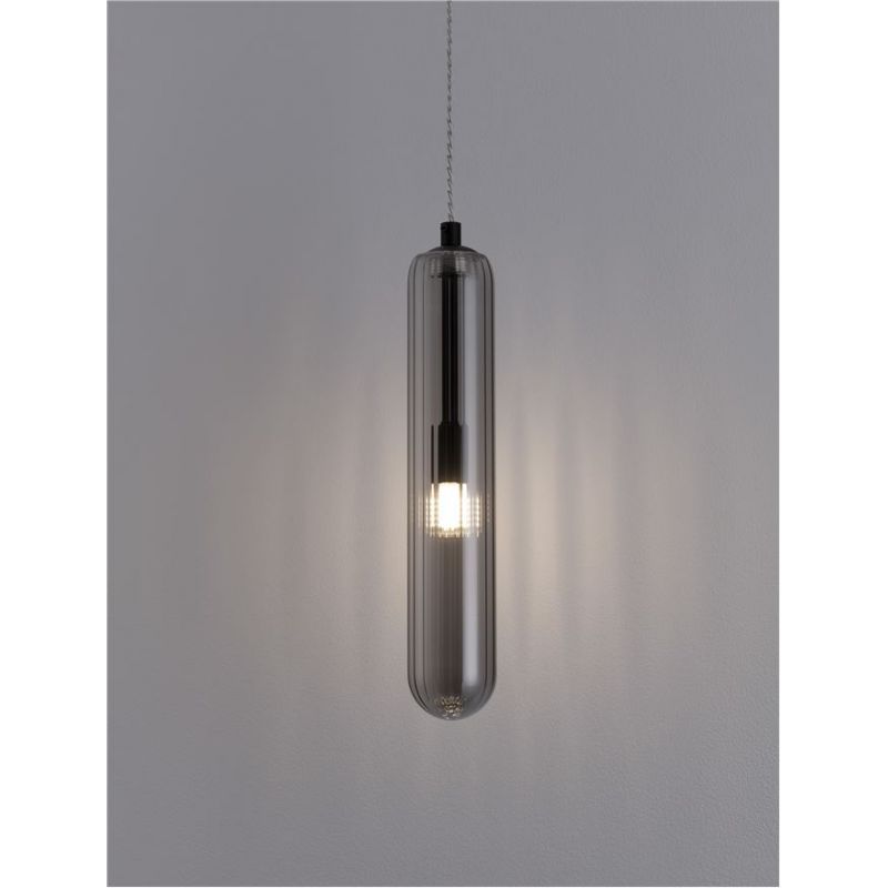 | Materiale | metal finisaj negru mat, abajur sticla decorativa nuanta gri fumuriu |