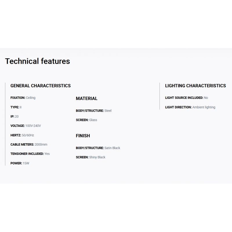 | Materiale | structura metal negru satin, abajur sticla negru lucios |