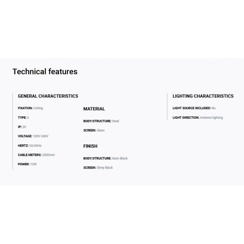 | Materiale | structura metal negru satin, abajur sticla negru lucios |