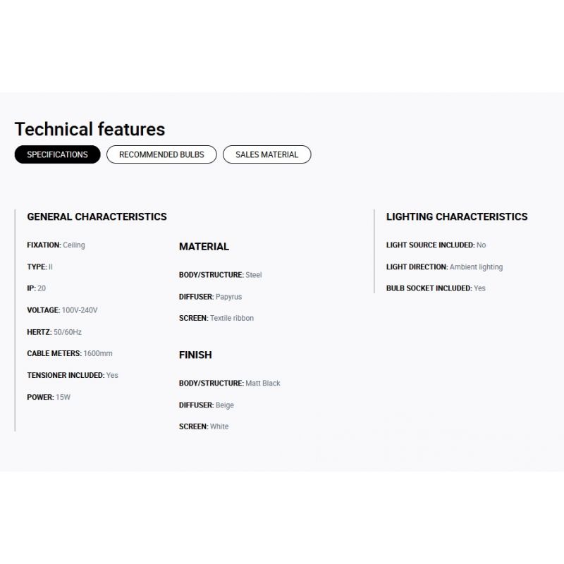 | Materiale | otel negru mat, abajur panglica textila, difuzor papyrus, finisaj alb |