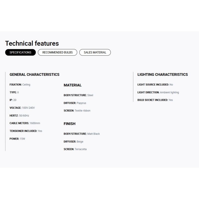| Materiale | otel negru mat, abajur panglica textila, difuzor papyrus, finisaj maroniu (terracotta) |