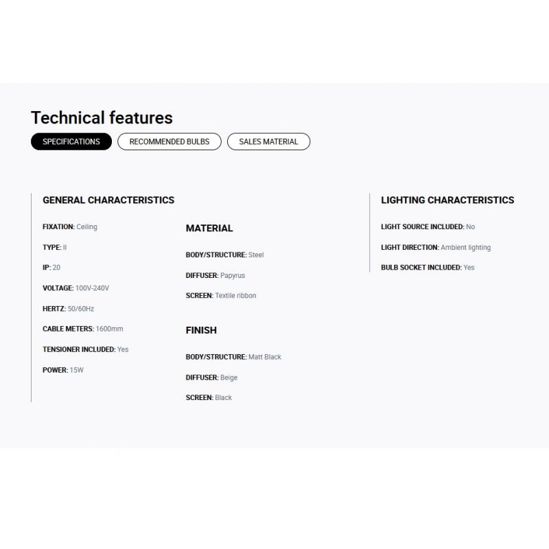 | Materiale | otel negru mat, abajur panglica textila, difuzor papyrus, finisaj negru |