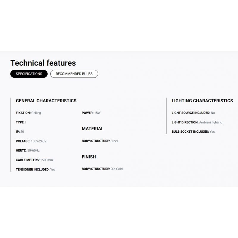 | Dimensiuni | diametru pendul:30cm inaltime:19cm + suspensie:150cm |