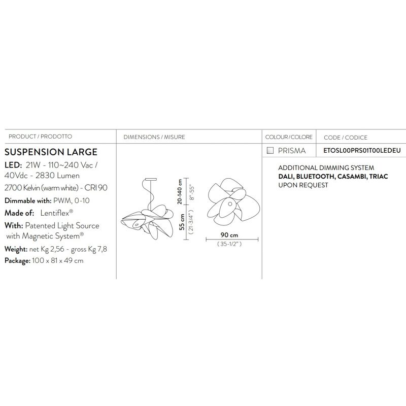 | Putere | 21W LED 2830 Lumen-2700 Kelvin (warm white) - CRI 90 |