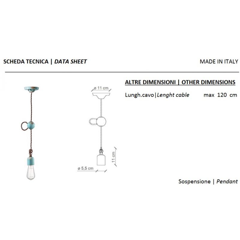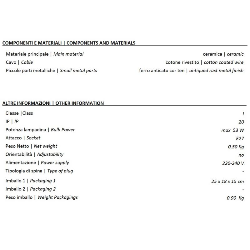 | Materiale | ceramica si parti metalice cu detalii specifice pentru un efect antichizat, cablu textil |