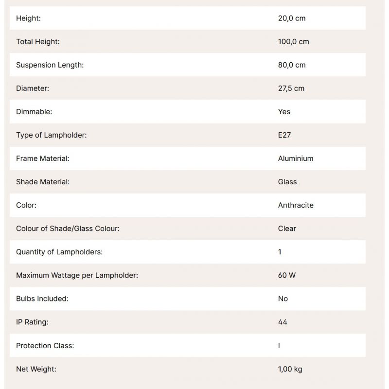 | Dimensiuni | diametru:27,5cm; inaltime corp:20cm; inaltime cu suspensie:100cm |