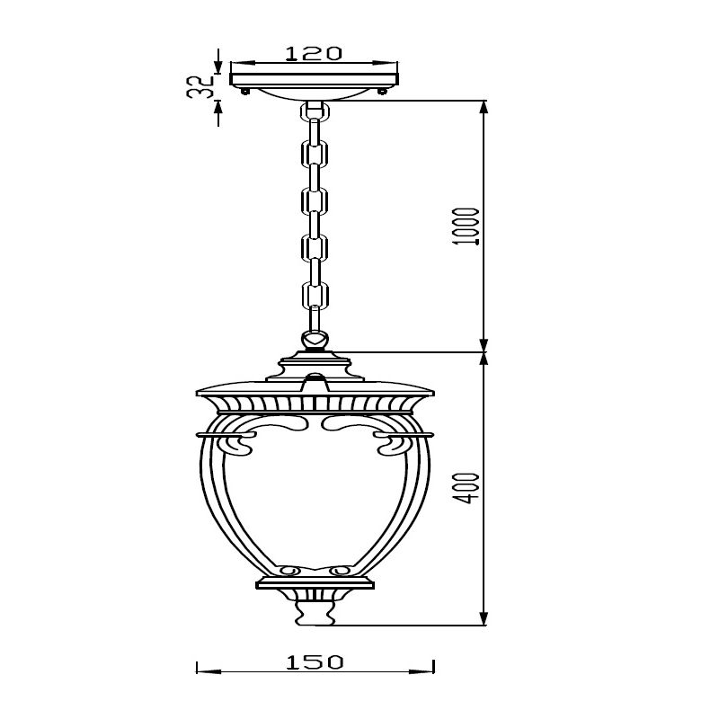Dimensiuni | diametru:15cm; inaltime:40cm+ lant 100cm |