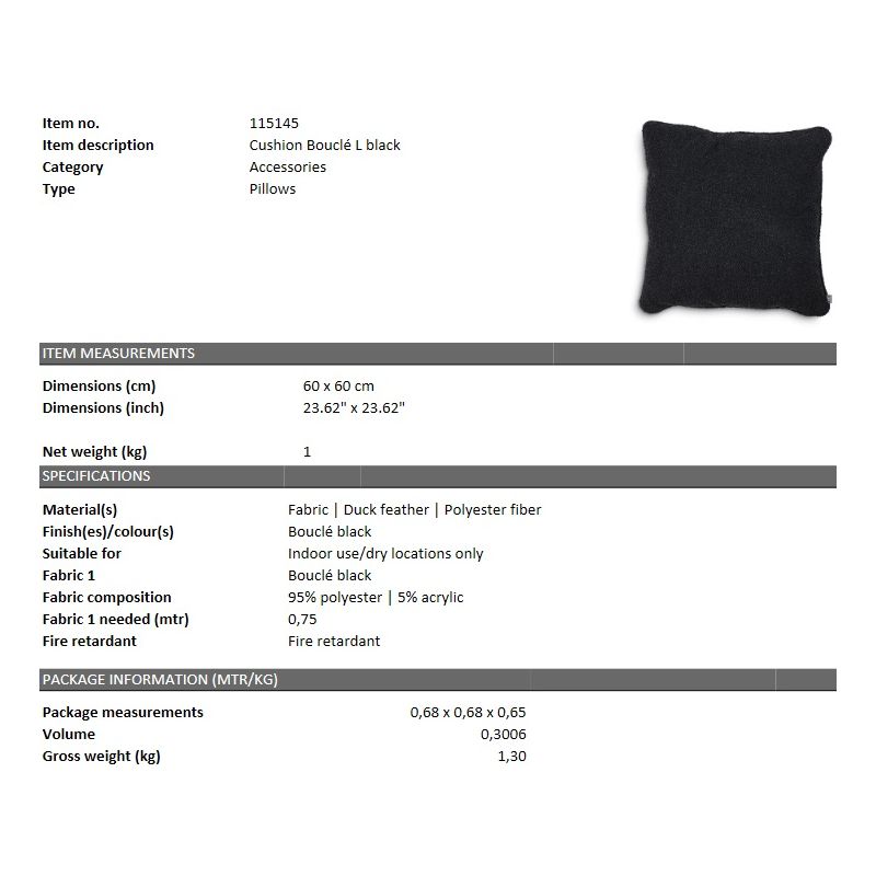 Perna decorativa LUX 60x60cm, Bouclé Black L