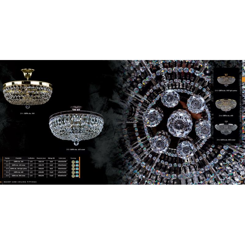 Plafonieră elegantă decorată cu garnituri de cristal Crystal Exclusive. Componentele din cristal și piesele metalice fine în finisaj auriu, argintiu sau alte suprafețe antichizate fac o combinație extraordinară. Lustra din cristal, combinată în special cu alte lustre de cristal sau corpuri de iluminat, este potrivit pentru orice interior, modern sau tradițional.
