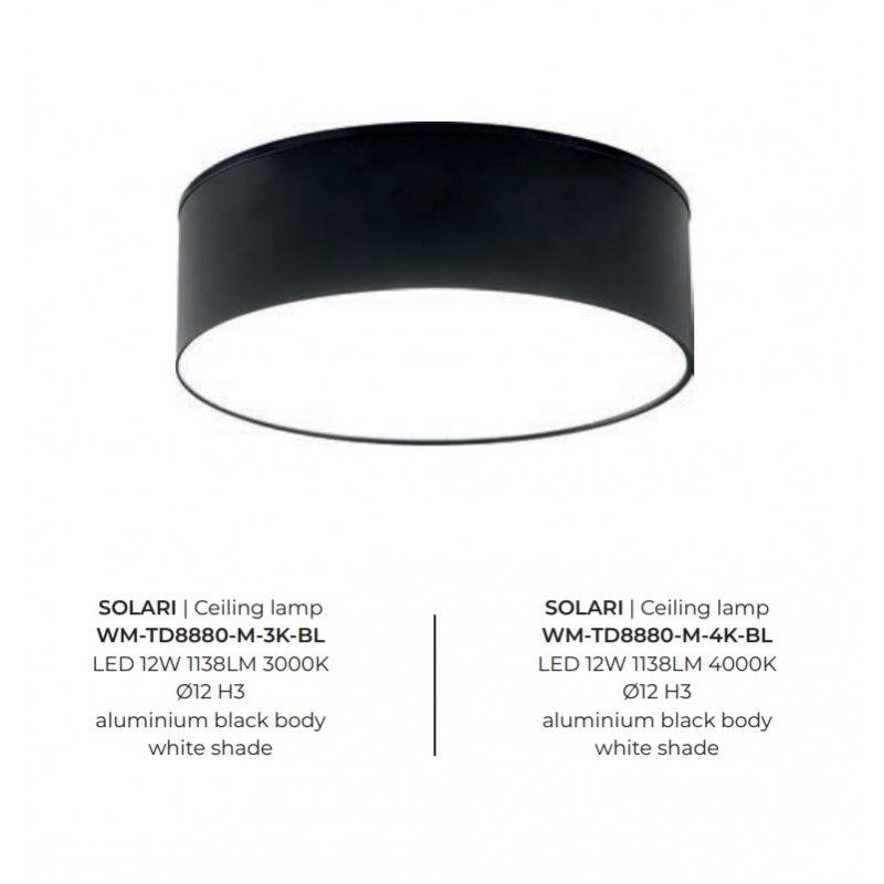 Spot aplicat, Plafoniera LED 3000K SOLARI negru, 12cm