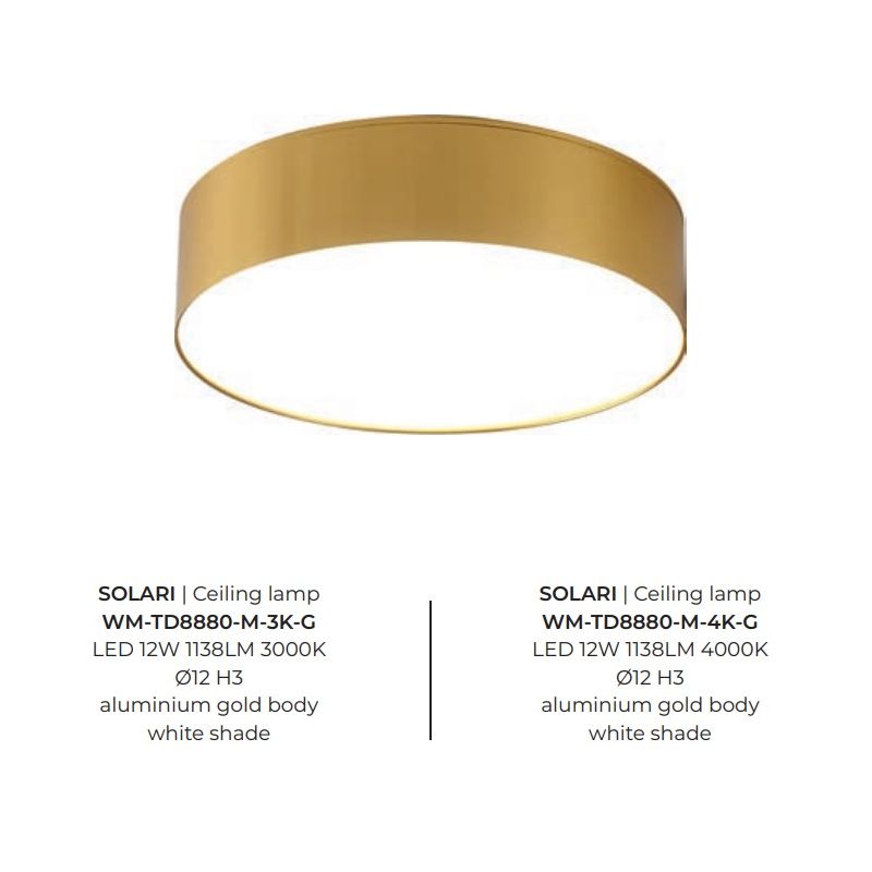Spot aplicat, Plafoniera LED 3000K SOLARI auriu, 12cm