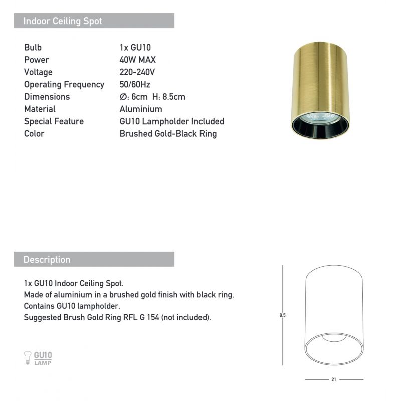 | Informatii produs: | lampa se poate accesoriza cu inel decorativ auriu: cod Ref: G 154 (exclus din pret) |