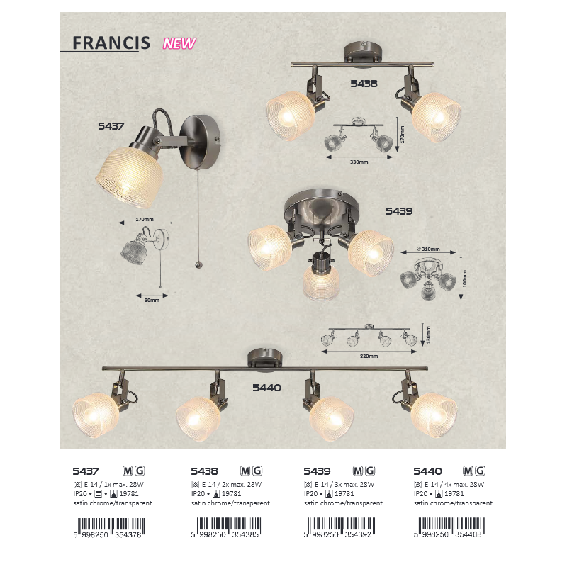 | Materiale | metal crom satin, abajur sticla transparenta |