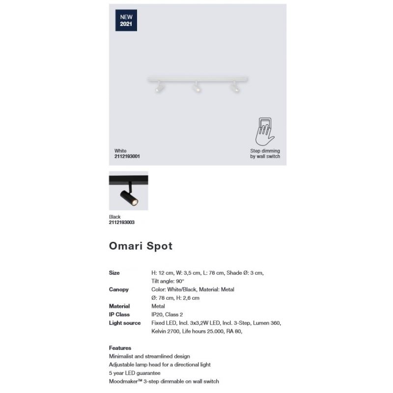 Vezi fișa cu informații despre produsOmari este o serie de spoturi axate pe linii nordice ușoare, curate și simple. Această plafon minimalist și aerodinamic cu trei pete se potrivește în majoritatea designurilor interioare. MoodMaker (dimabil în trei pași) de pe comutatorul de perete vă permite să creați cu ușurință doar atmosfera confortabilă potrivită.