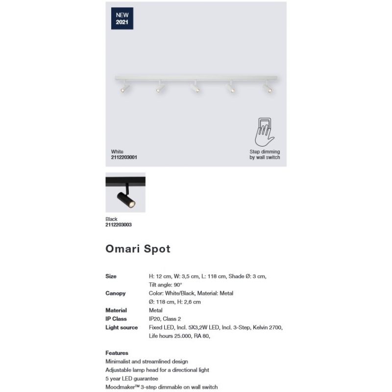 Vezi fișa cu informații despre produsOmari este o serie de spoturi axate pe linii nordice ușoare, curate și simple. Această plafon minimalist și aerodinamic cu trei pete se potrivește în majoritatea designurilor interioare. MoodMaker (dimabil în trei pași) de pe comutatorul de perete vă permite să creați cu ușurință doar atmosfera confortabilă potrivită.