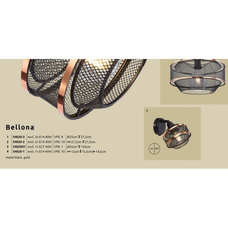 Plafoniera metal negru/auriu BELLONA 3