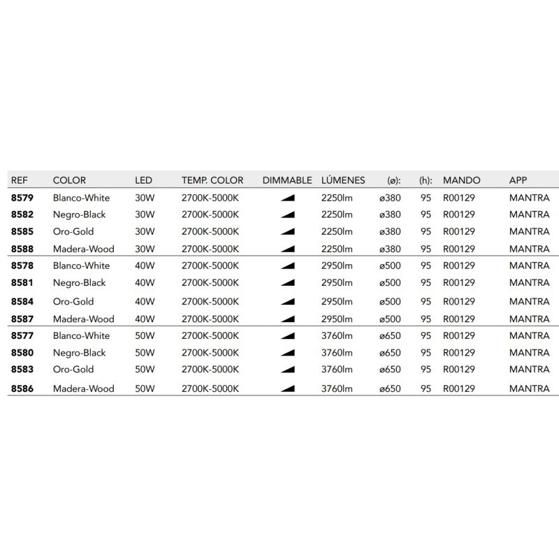 | Informatii produs: | Lustra Smart este controlabila de pe telefon/ tableta folosind aplicatia Mantra sau din telecomanda cod R00129 inclusa in pret |