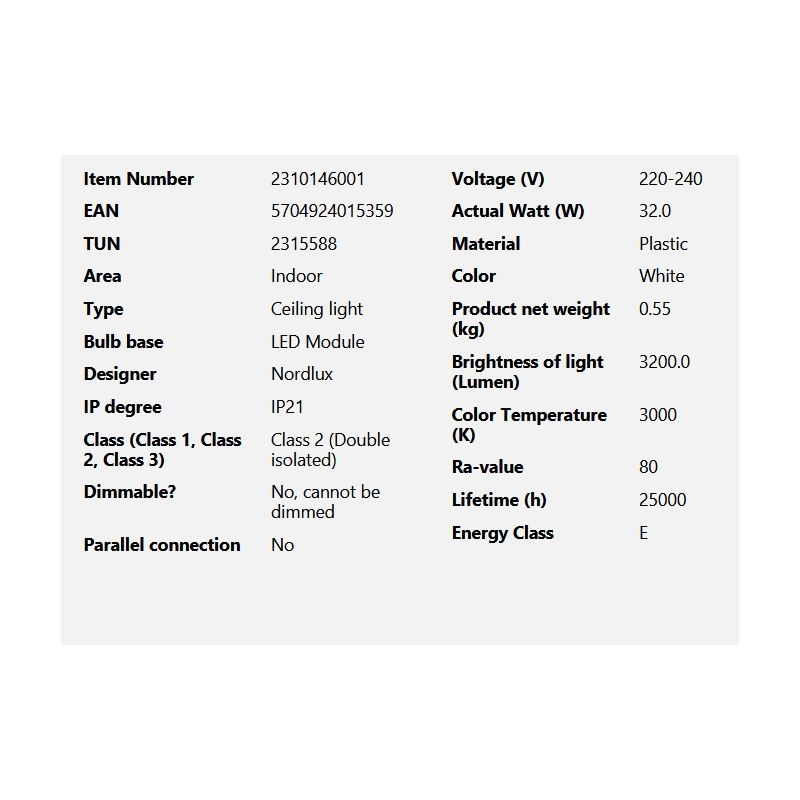 Putere | 32Watt modul LED integrat, 3200Lm, 3000K, inclus in pret |