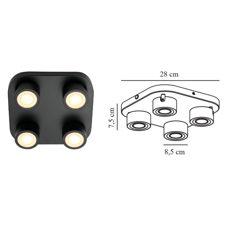 Putere | 4 x 3,5W Led modul integrat 2700K |