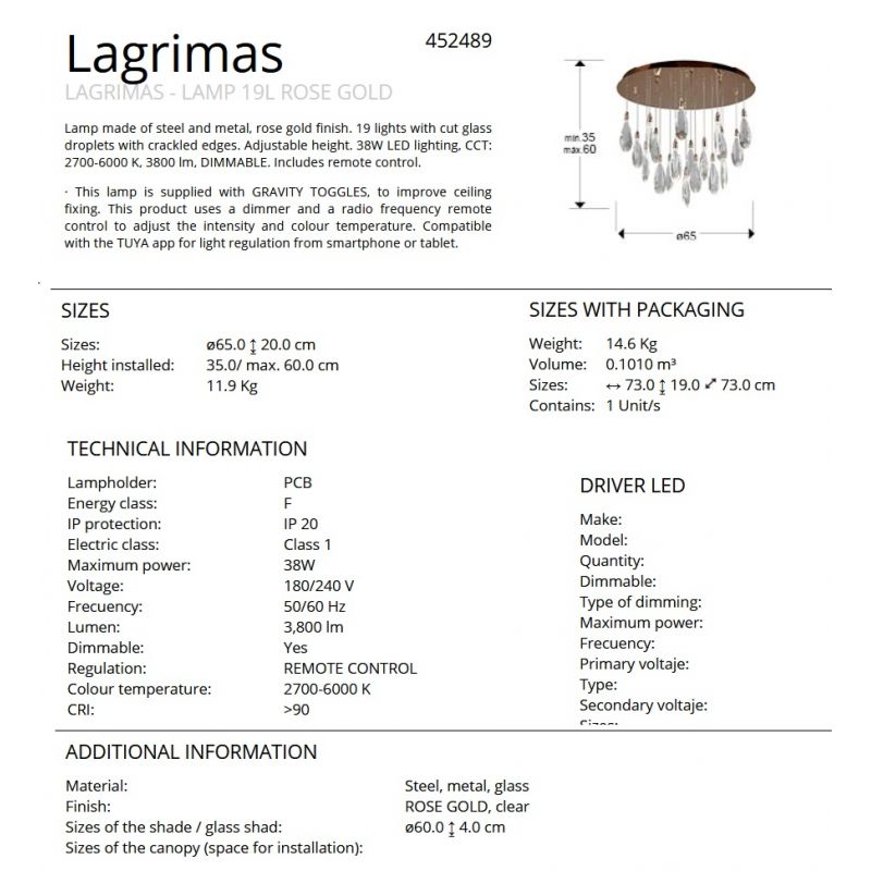 | Materiale | metal finisaj auriu roze, cristale din sticla |