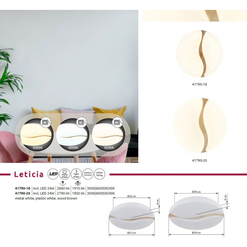 | Putere | 24W LED dimabil 1910Lm CCT 3000/6000/4200K mai multe niveluri, culorile pot fi fixate, functie de memorie prin comutatorul de perete |