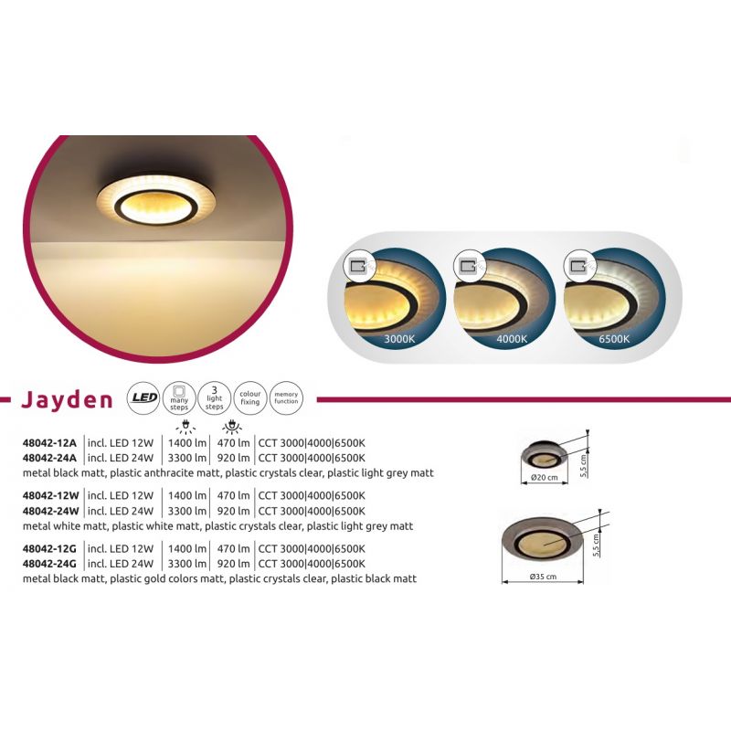 | Putere | 24 Watt LED integrat, 920Lm, CCT 3000/4000/6500, culorile pot fi fixate, functie de memorie prin comutatorul de perete |