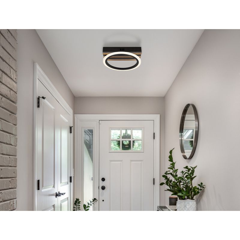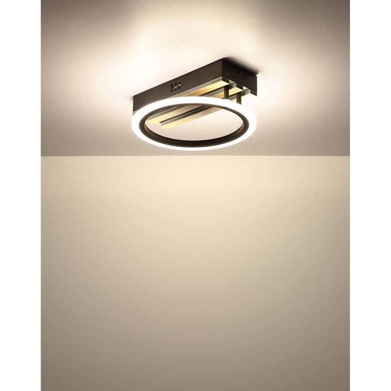 | Materiale | metal negru mat, MDF cu efect de lemn inchis, plastic opal |