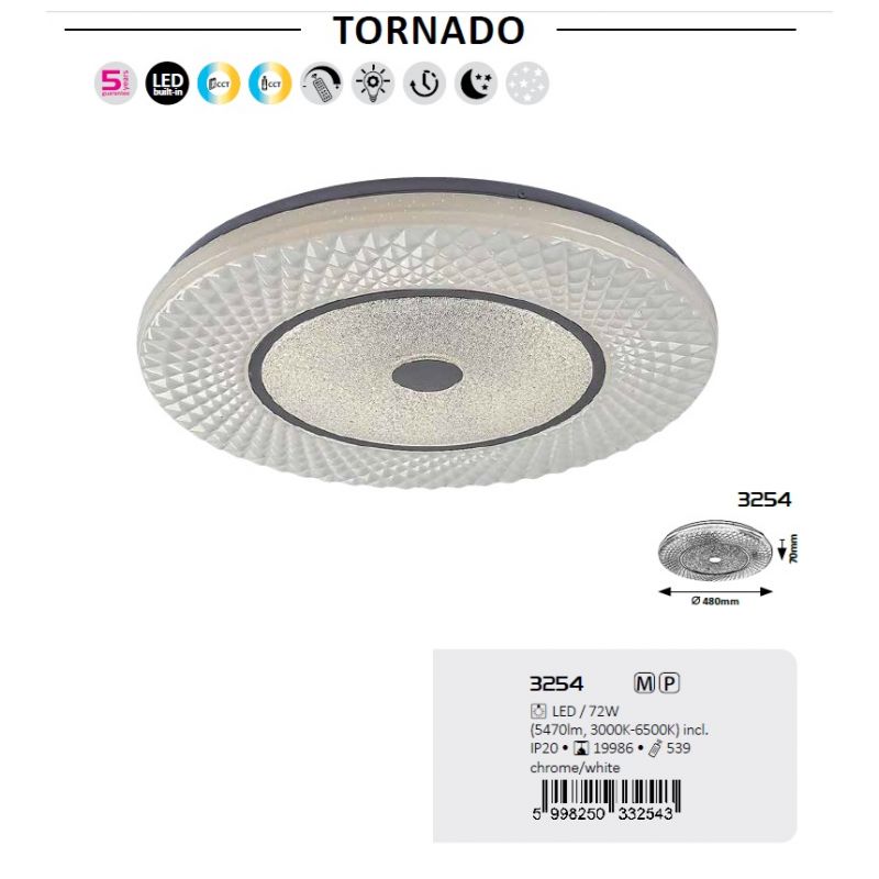 | Putere | LED 72W integrat 5470Lm 3000K-6500K, telecomanda inclusa in pret |