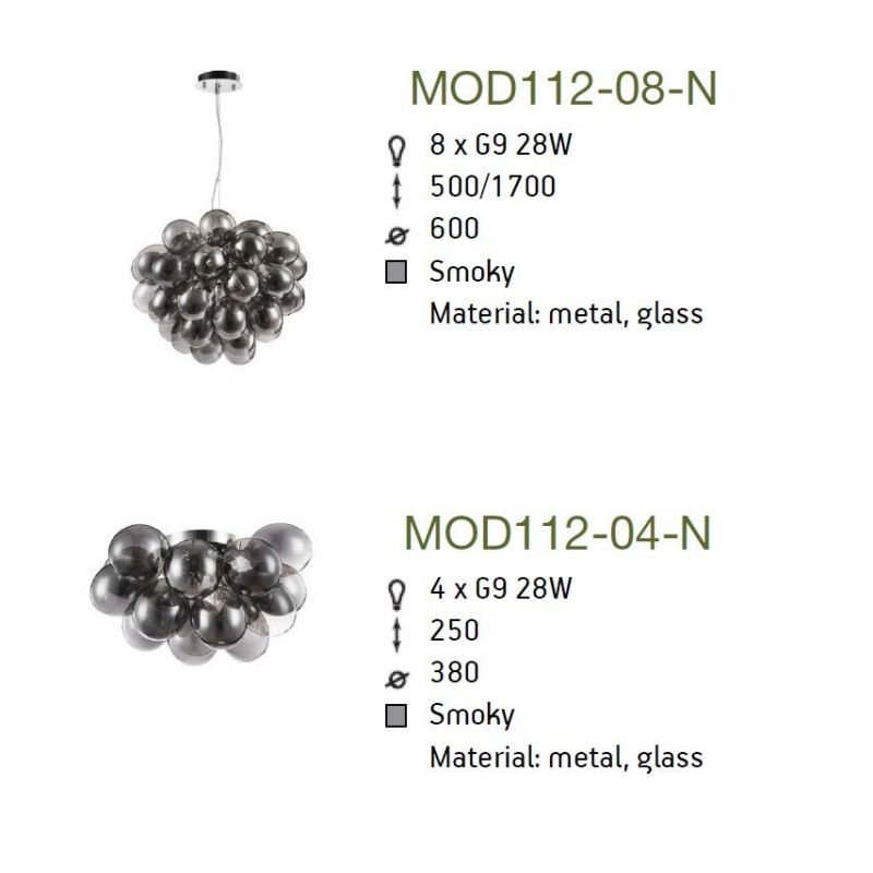 | Materiale | cadru metal cromat, sticla decorativa suflata manual |