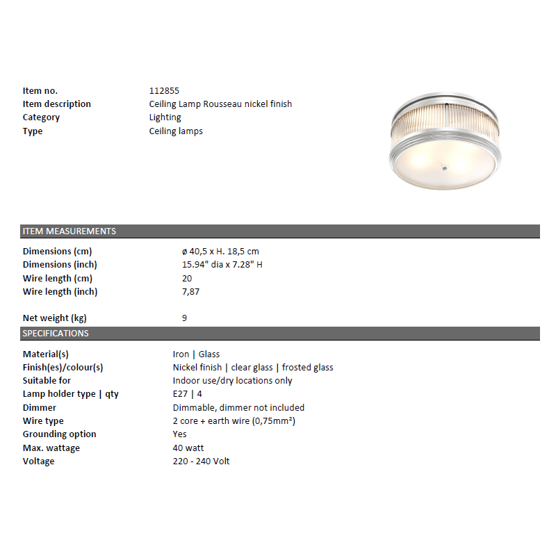 | Descriere | metal finisaj nickel, sticla transparenta, sticla mata- frosted glass |
