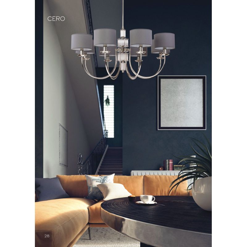 Seria Cero se distinge activ de alte lustre cu design modern. Tuburile din sticlă care curg în jos sunt montate pe suporturi speciale realizate și prelucrate manual. Aceasta este o soluție neobișnuit de elegantă și rar folosită, care dă un efect de iluminare uimitor în orice interior. Lămpile Cero vă vor umple locuința cu frumusețe elegantă, noblețe și grandoare, vor crea un sentiment de calm, fiabilitate, confort.