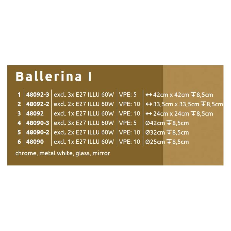 Plafonieră cu abajur dublu, disponibilă în 3 dimensiuni pentru a ne permite o joacă excelentă cu dimensiunile și luminozitatea într-o singură încăpere. Placa de sticlă mai mare este o oglindă, sticla mai mică este un opal decorat cu o multitudine de mărgele de sticlă, acestea făcând modelul special. Tip dulie 1x E27, 60W. Sursa de lumină nu este furnizată cu lampa, vă recomandăm să folosiți surse LED datorită consumului redus de energie, a temperaturii de culoare selectabile și durabilității mari.