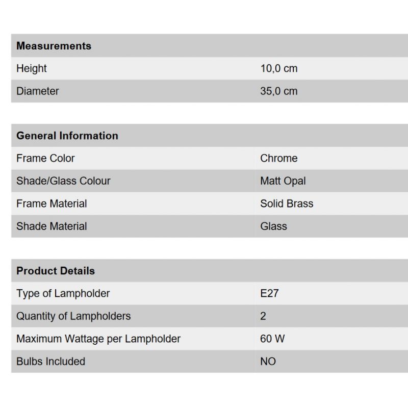 | Descriere | cadru alama solida finisaj crom, abajur de sticla opal mat |