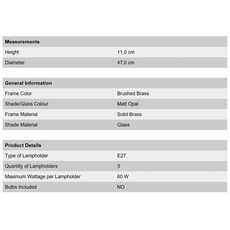 | Descriere | cadru alama solida finisaj alama matt, abajur de sticla opal matt |