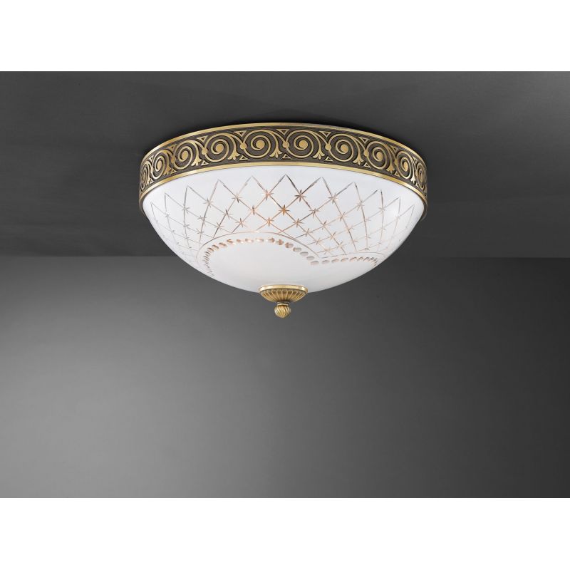 | Informatii produs: | Plafoniera realizata manual din alamă masivă si sticla suflata , încadrându-se armonios atât într-un decor clasic sau modern. |