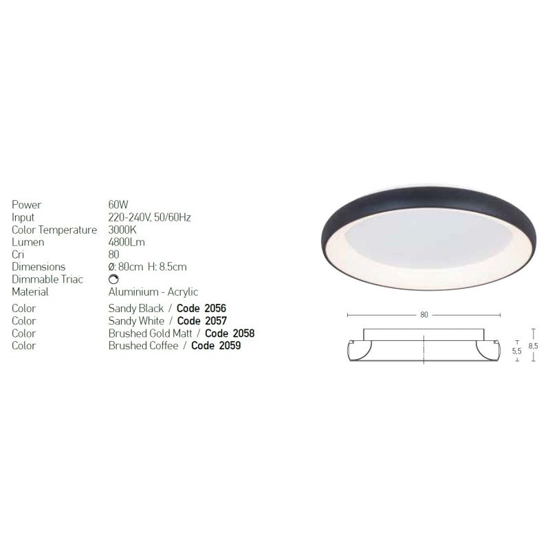 | Putere | 60Watt modul LED integrat, dimabil, 4800lm, 3000K |