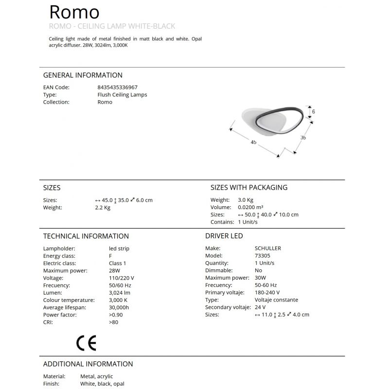 | Descriere | metal alb-negru mat, difuzor acrilic opal |