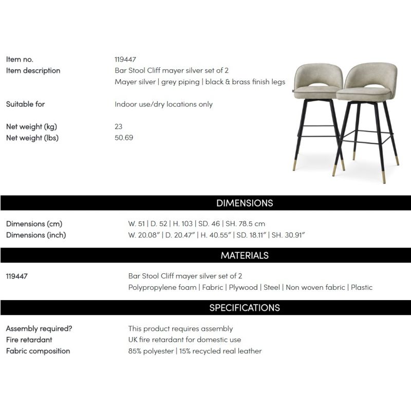| Descriere | picioare metalice negre cu detalii din alama, placaj, tapiterie tesatura Mayer silver, umplutura spuma |