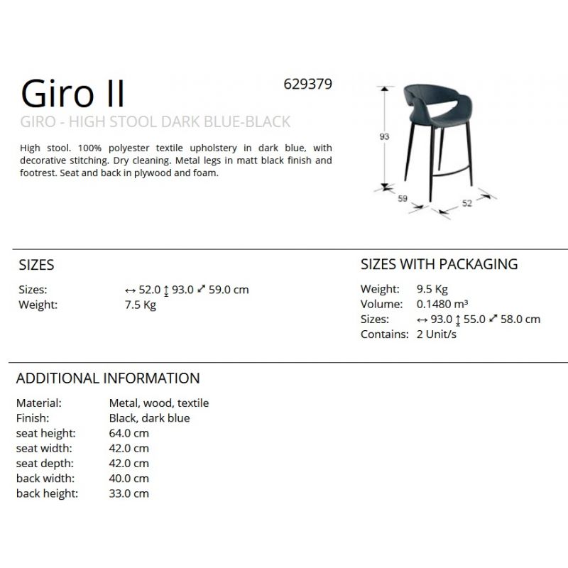 | Dimensiuni | latime:52cm; inaltime:93cm; adancime:59cm; inaltime sezut:64cm |