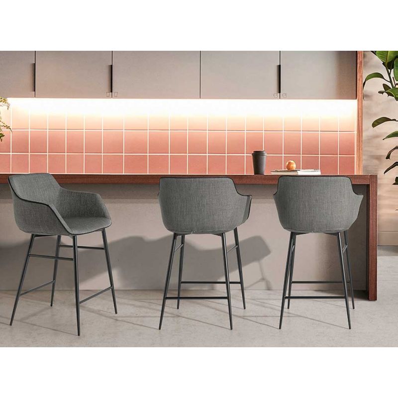 Scaunul cu brate Tomika cu design ergonomic este ideal pentru bucatarii cu bar sau baruri, armonizand minunat cu mesele din lemn masiv dar si cu cele din metal. Picioare din otel sunt in constrast deosebit cu tapiteria din tesatura oferind aspect modern si plin de farmec.