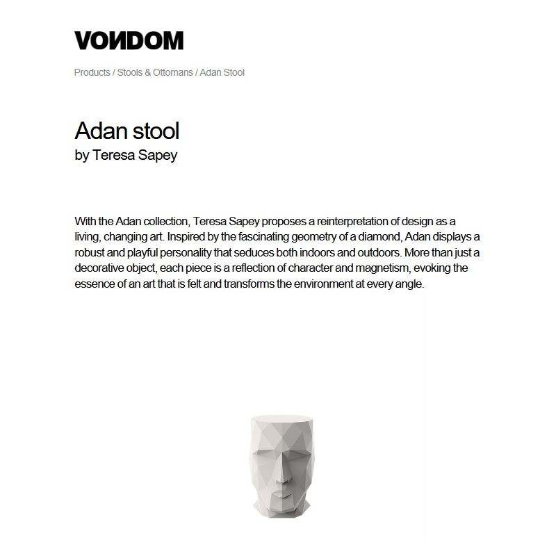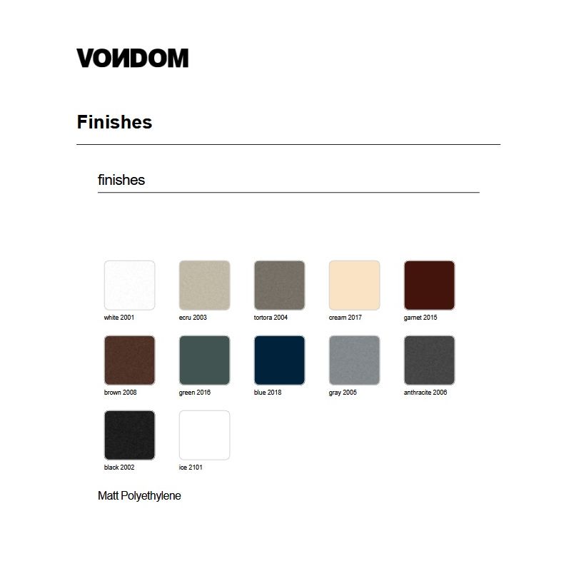 Parteneriate cu designeri internaționali – VONDOM colaborează cu arhitecți și designeri renumiți, precum Stefano Giovannoni, Ludovica + Roberto Palomba, Javier Mariscal, Karim Rashid, A-cero și Ramón Esteve, oferind piese care îmbină estetica contemporană cu funcționalitatea.